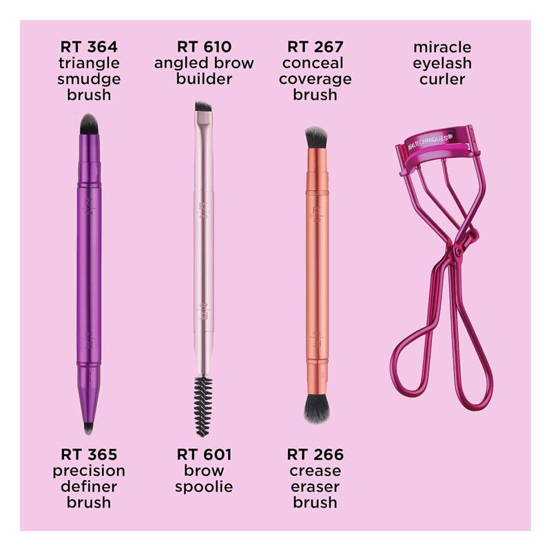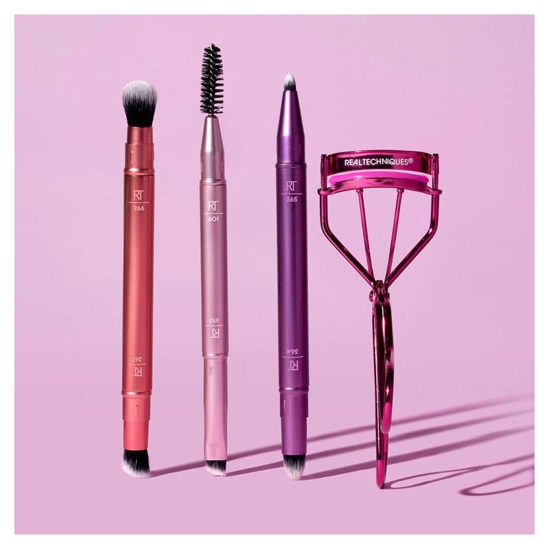 Take your looks anywhere with the Real Techniques Double Time Brush + Lash Set – your all-in-one eye kit for blending, defining, and lifting.