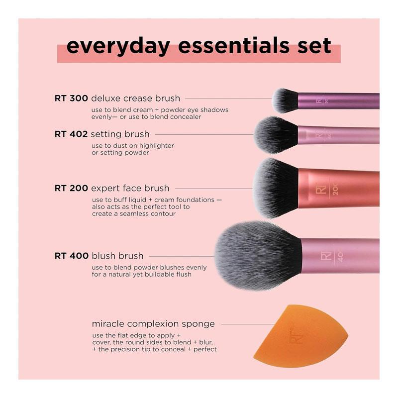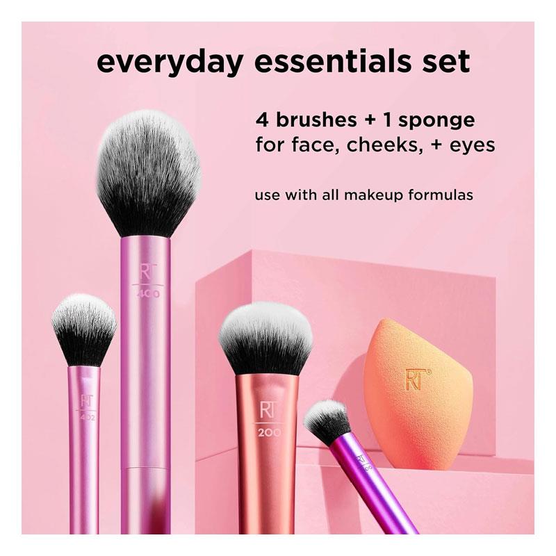 Real Techniques Everyday Essentials + Makeup Sponge Kit – 5 Piece Makeup Brush Set