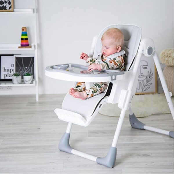 • Luxury High Lo highchair finished in a soft grey and white modern design