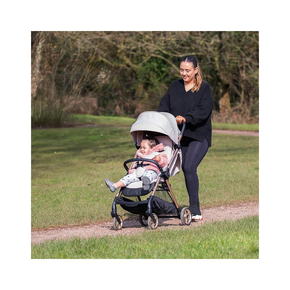 Luxury version of the award-winning Push Me Koko stroller featuring recycled plastic fabrics to support eco values and innovation. Featured on a champagne lightweight anodised chassis that sets this model into a class of its own and is supporting the environment at the same time.