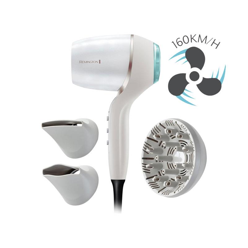 Remington Hydraluxe Pro Hair Dryer 2200W – Professional No Heat Damage Hair Dryer with Diffuser & Concentrators (White)