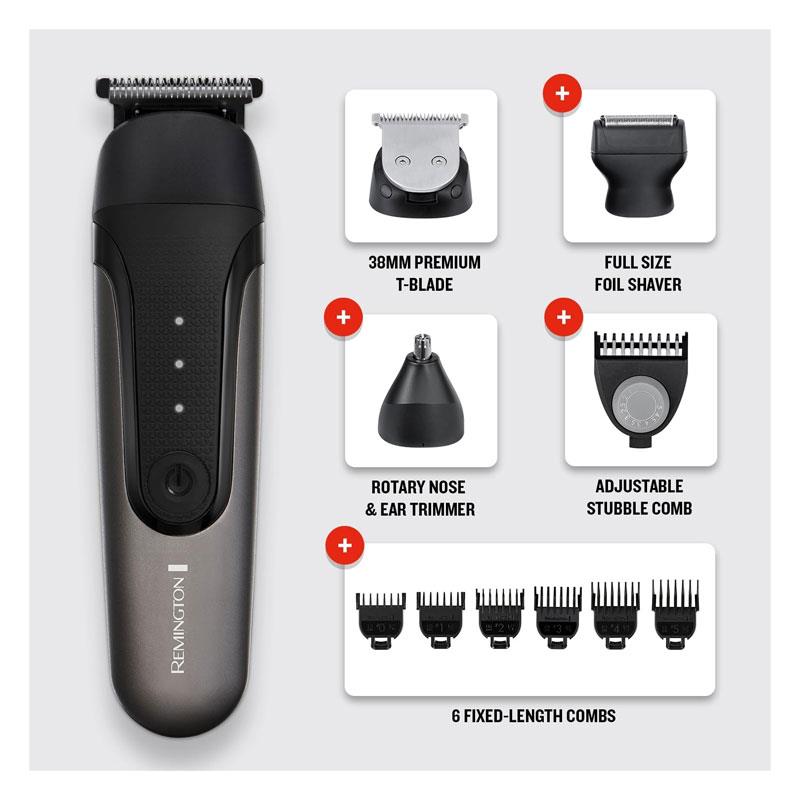 - Attachments: 3 full-size attachments (Foil Shaver, 38mm T-Blade, Rotary Nose & Ear Trimmer)