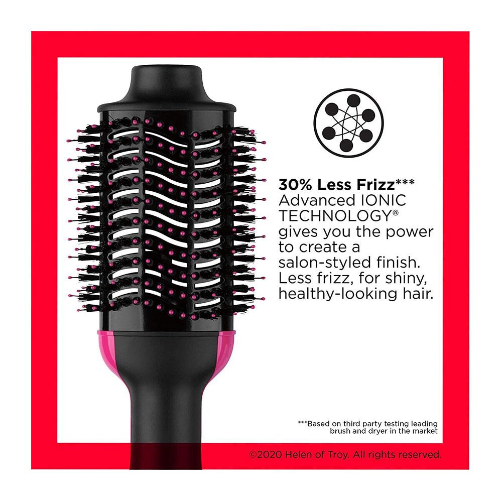 The Revlon Salon One-Step Hair Dryer And Volumizer is designed to distribute air quickly and evenly to the hair to dry and style faster for less heat damage. Ionic technology also saturates the airflow with negative ions to reduce the size of water droplets for faster drying. This helps condition, smooth and makes hair shinier, while reducing frizz and static.