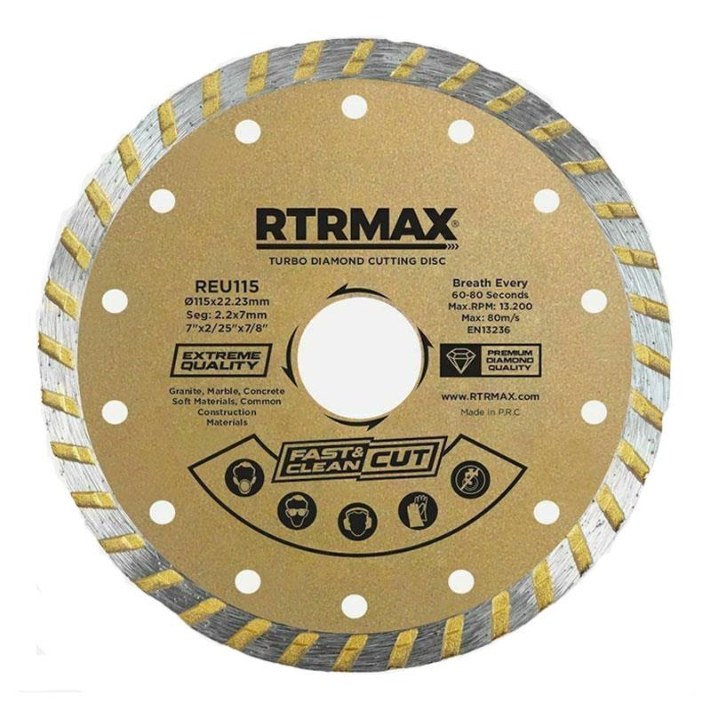 • 1 × RTRMAX Porcelain 4.5″ Turbo Thin Diamond Dry Cutting Blade 115mm – REA115