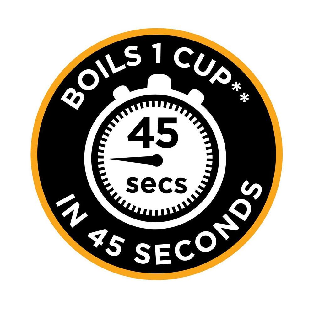 • Boils 1 cup in 45 seconds one cup is equal to 235ml of water