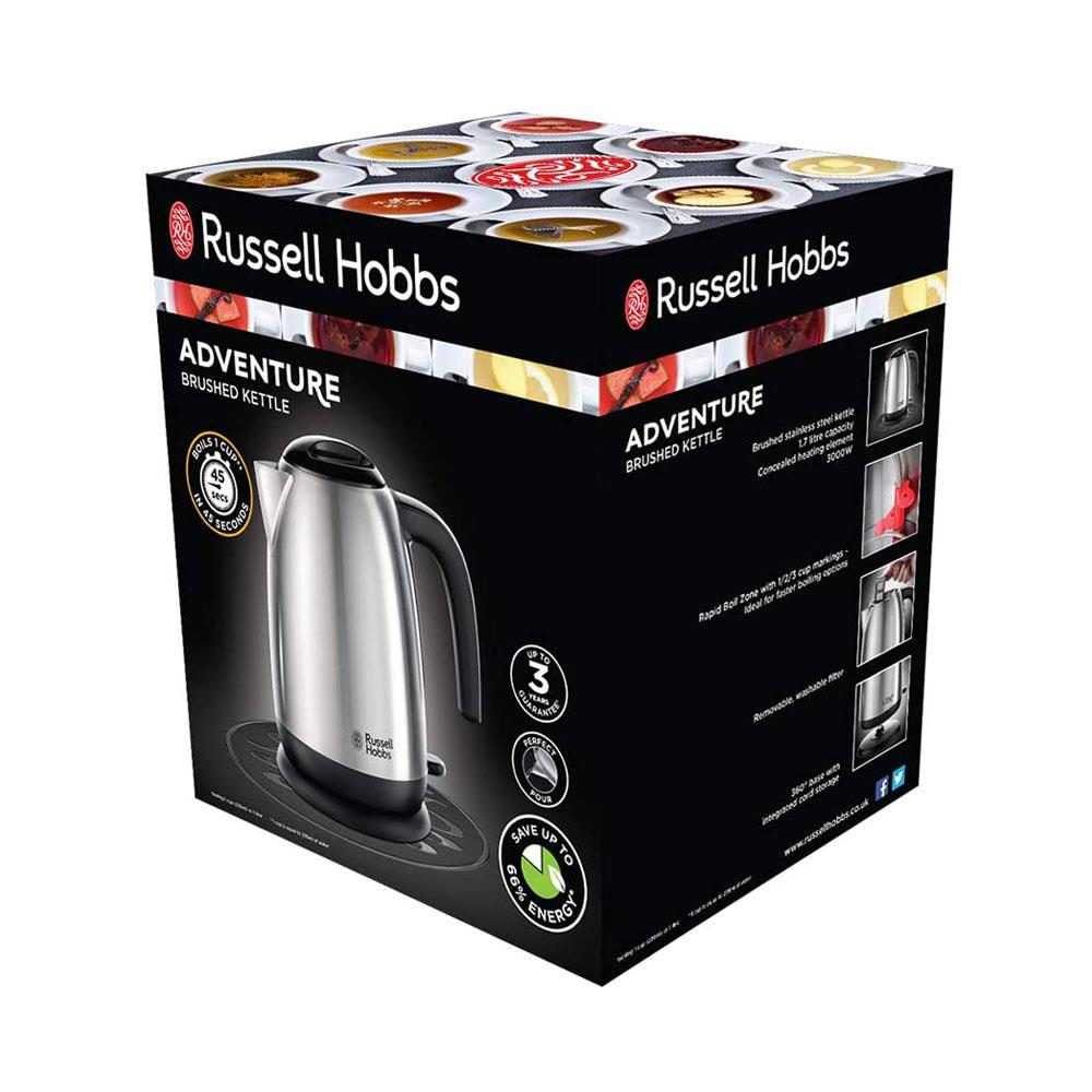 Russell Hobbs Adventure Electric Jug Kettle Brushed Stainless Steel 3000W 1.7 Litre – Silver