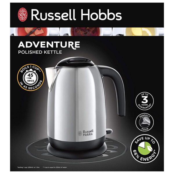 Home / Home & Kitchen / Small Appliances / Kettles / Russell Hobbs Adventure Polished Stainless Steel Kettle 3000 W 1.7 Litres