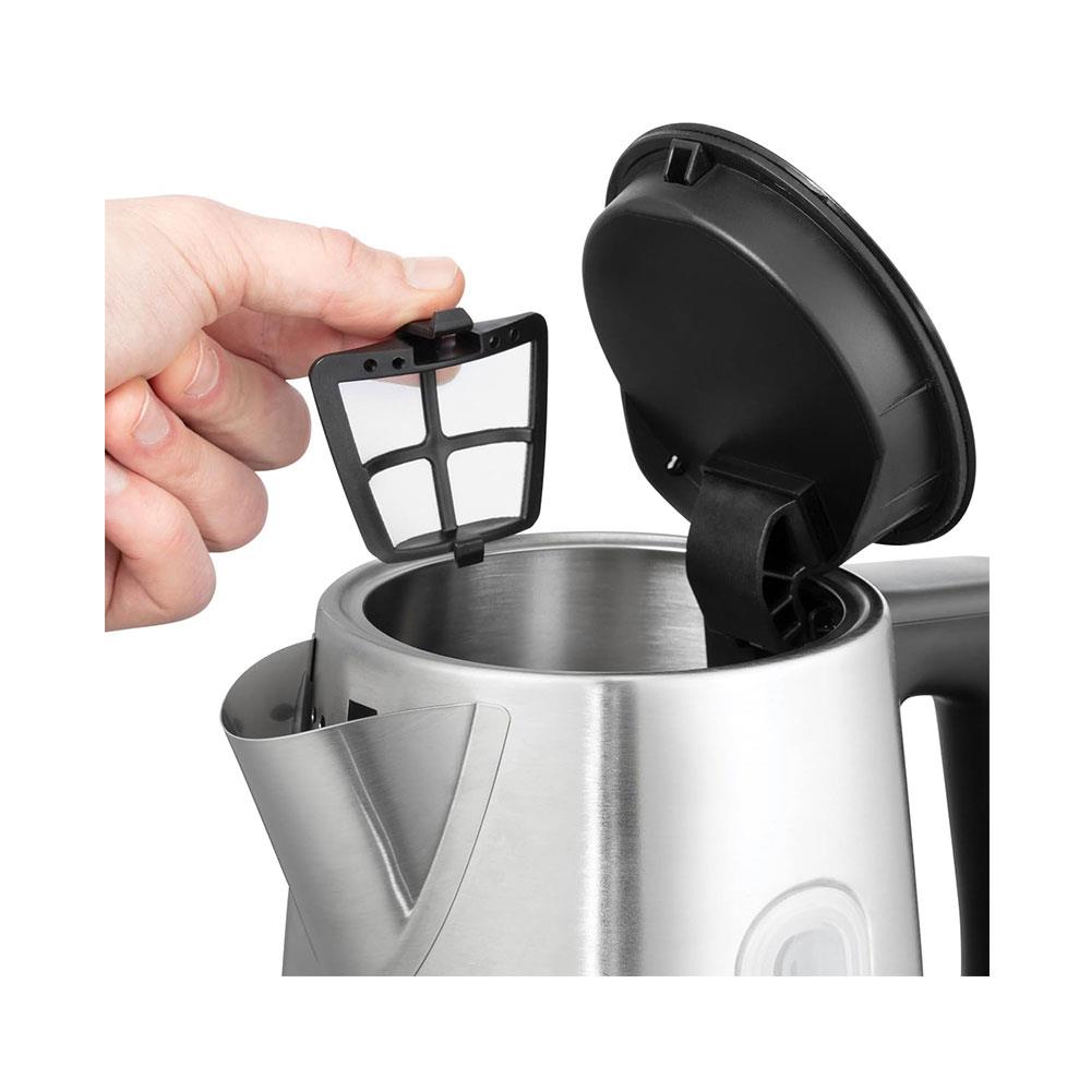 • 3000W electric kettle with 1.7L capacity with a brushed stainless steel