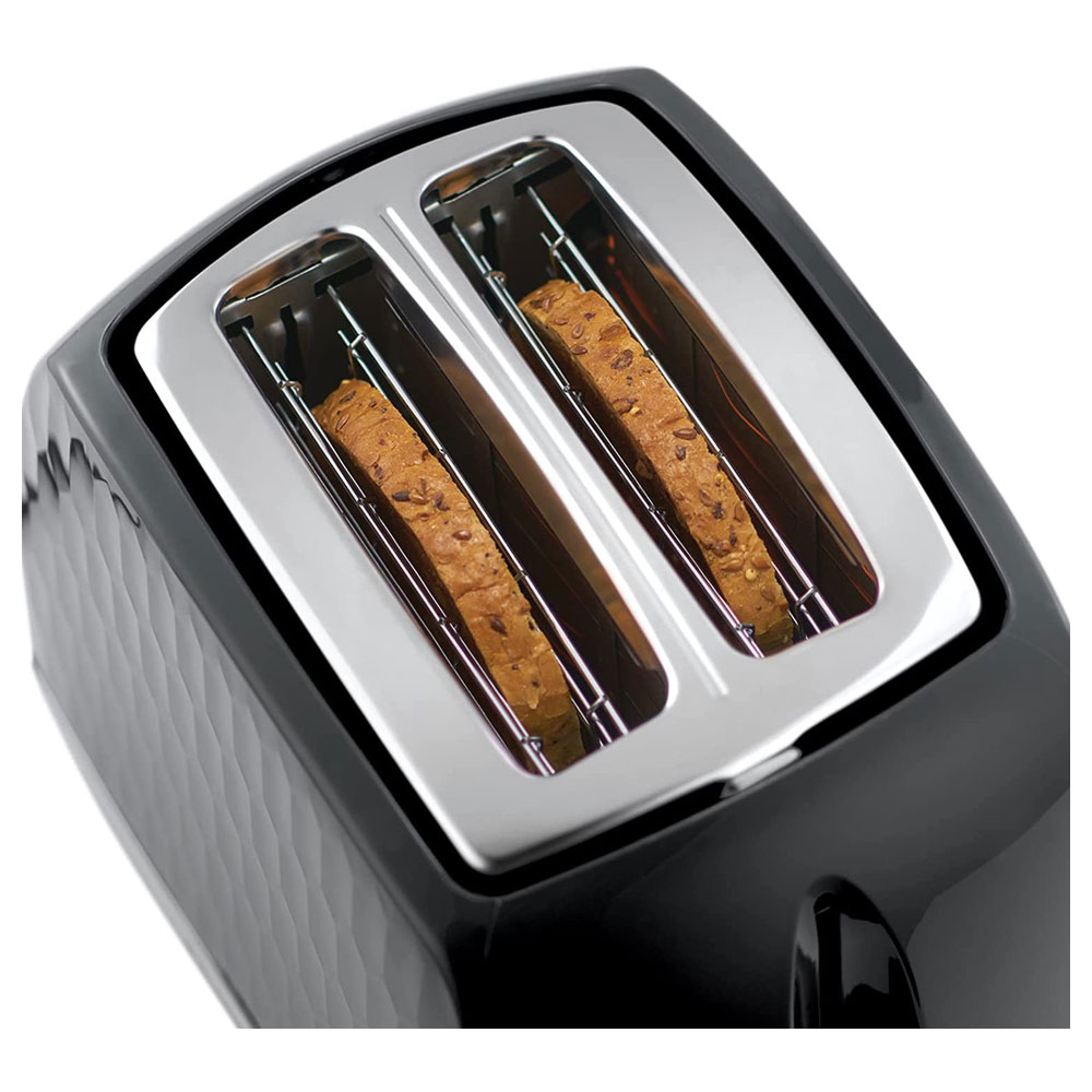 Keep your kitchen on-trend with the Honeycomb 2 Slice Toaster in a Premium Black with a Textured Design. Letting you give your kitchen a makeover without blowing your budget, this toaster not only brings style to your countertop but it also comes with convenient features too.