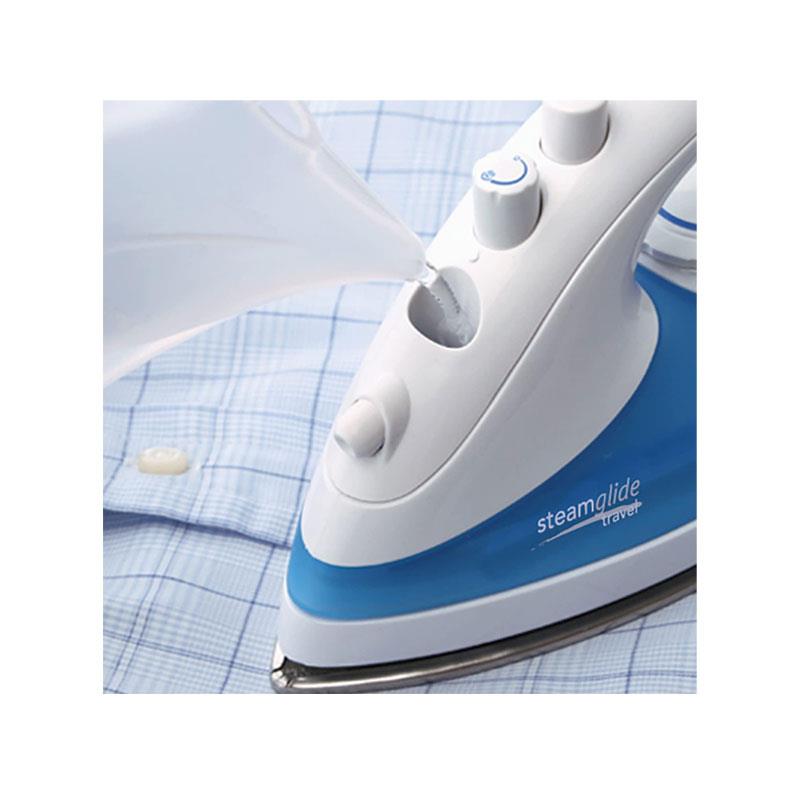 Russell Hobbs Dual Voltage Steam Glide Travel Iron 830W Stainless Steel Soleplate 80ml Tank Water Spray Variable Steam White And Blue - Image 7
