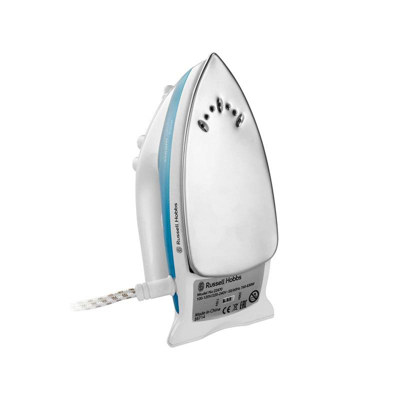 Russell Hobbs Dual Voltage Steam Glide Travel Iron 830W Stainless Steel Soleplate 80ml Tank Water Spray Variable Steam White And Blue - Image 6
