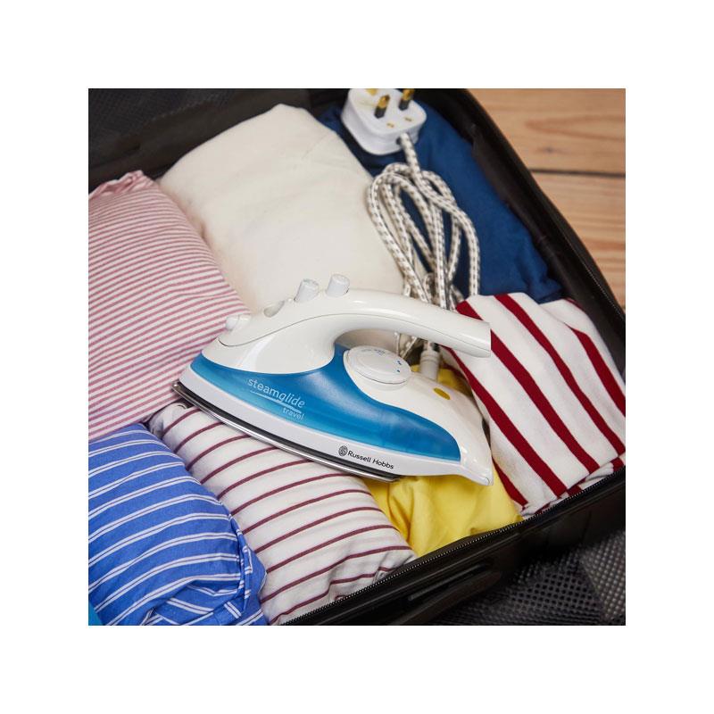Russell Hobbs Dual Voltage Steam Glide Travel Iron 830W Stainless Steel Soleplate 80ml Tank Water Spray Variable Steam White And Blue - Image 10