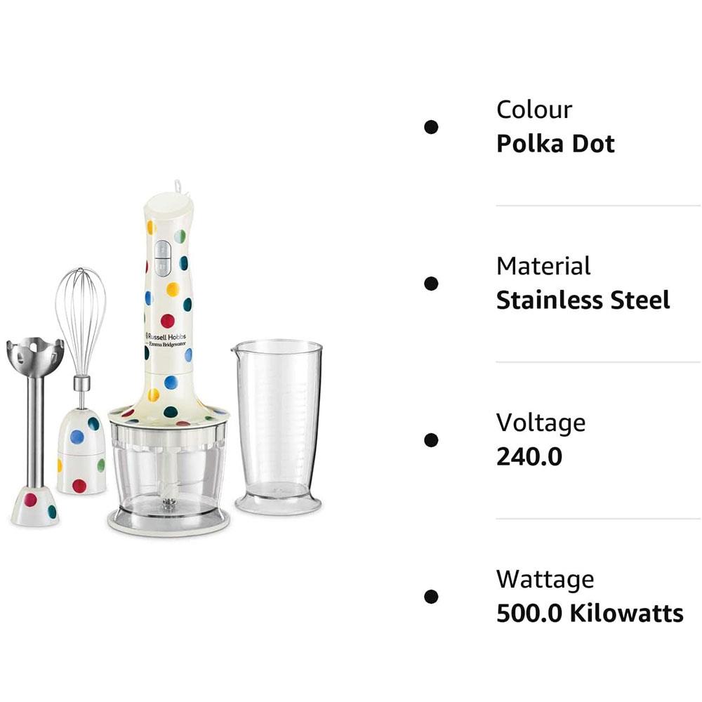 Russell Hobbs Emma Bridgewater 3-In-1 Hand Blender With Hand Whisk And Mini Chopper Attachments 500W – Polka Dot