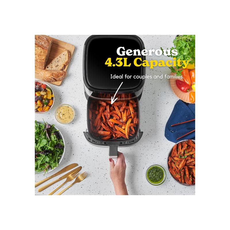 Cook smarter and healthier with the Russell Hobbs Satisfry 9-in-1 Digital Air Fryer 4.3L 1300W in Black. Designed for couples and small families, its generous 4.3-litre capacity and 9 preset cooking programs make preparing delicious meals fast, simple, and stress-free.