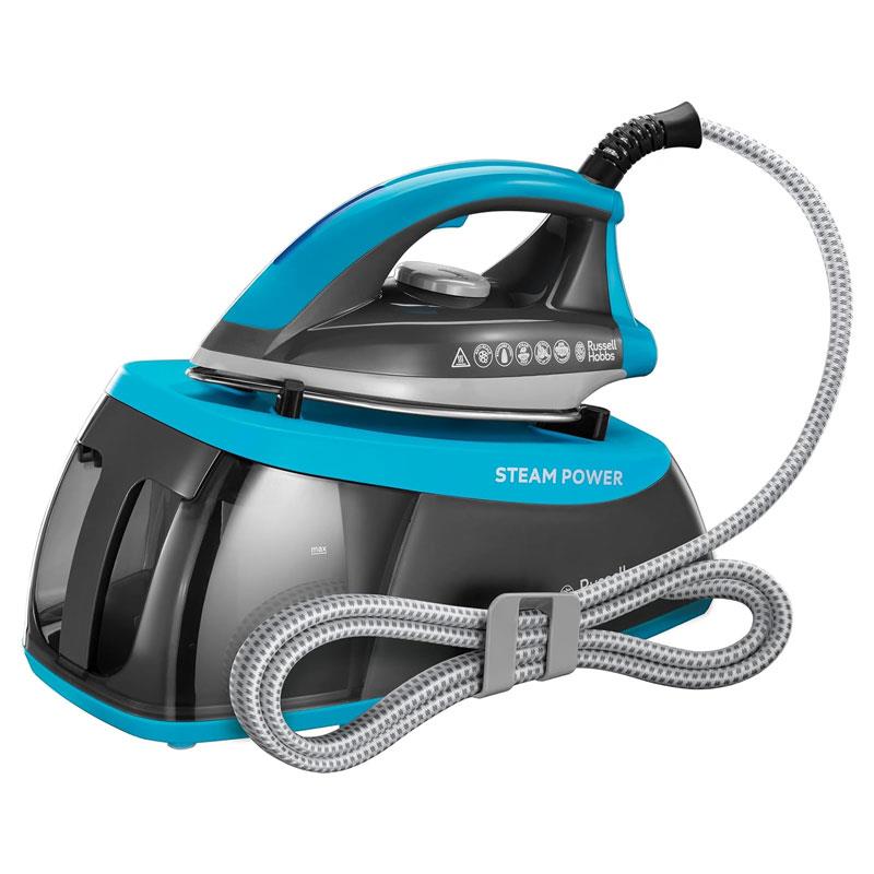 Russell Hobbs SteamPower Aqua Steam Generator Iron 2400W – 1.3L Removable Water Tank, Blue & Black