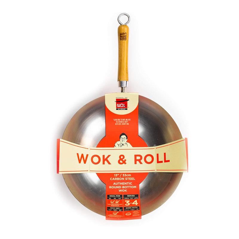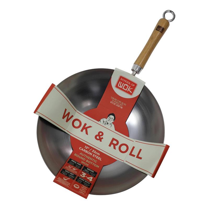 School of Wok 13″ / 33cm Carbon Steel Wok – Authentic Round Bottom with Bamboo Handle