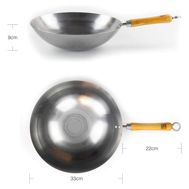 School of Wok 13'/33cm Carbon Steel Wok Authentic Round Bottom Bamboo Handle Silver - Image 4