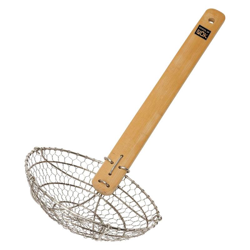 School of Wok Metal Birds Nest Wok Strainer 38cm Bamboo Handle Silver