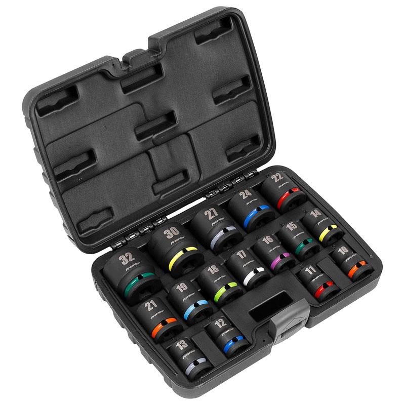 • Type: 1/2” Square Drive Impact Socket Set – 16 Piece