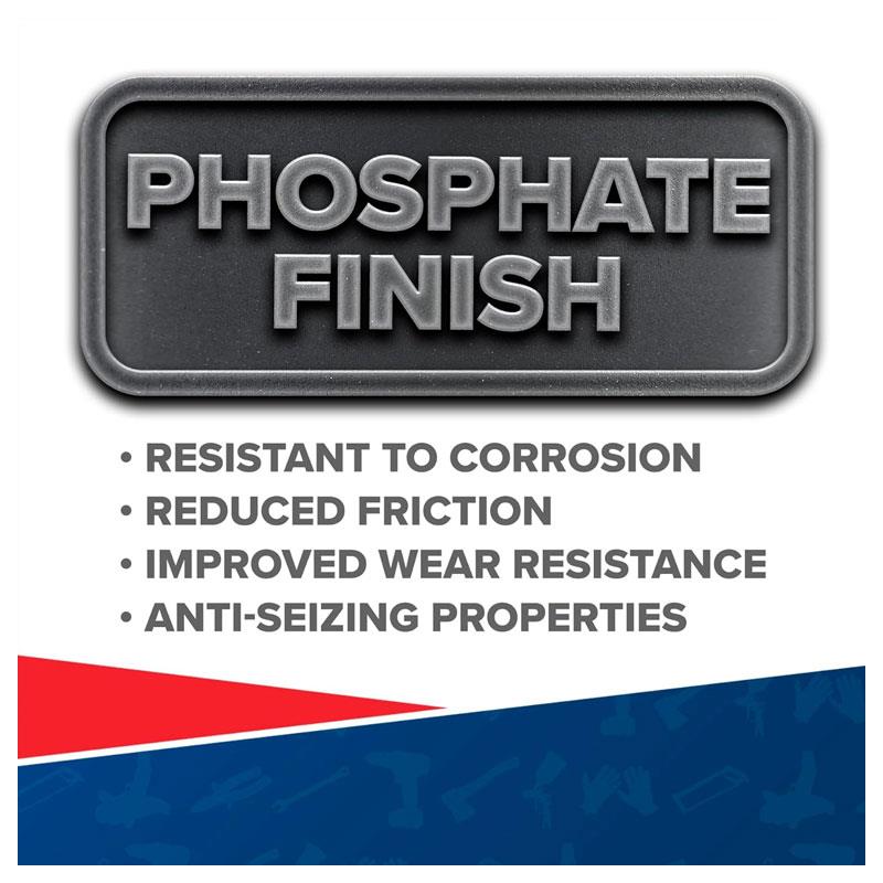 • Corrosion Resistant – Phosphate finish protects against rust and extends socket life.