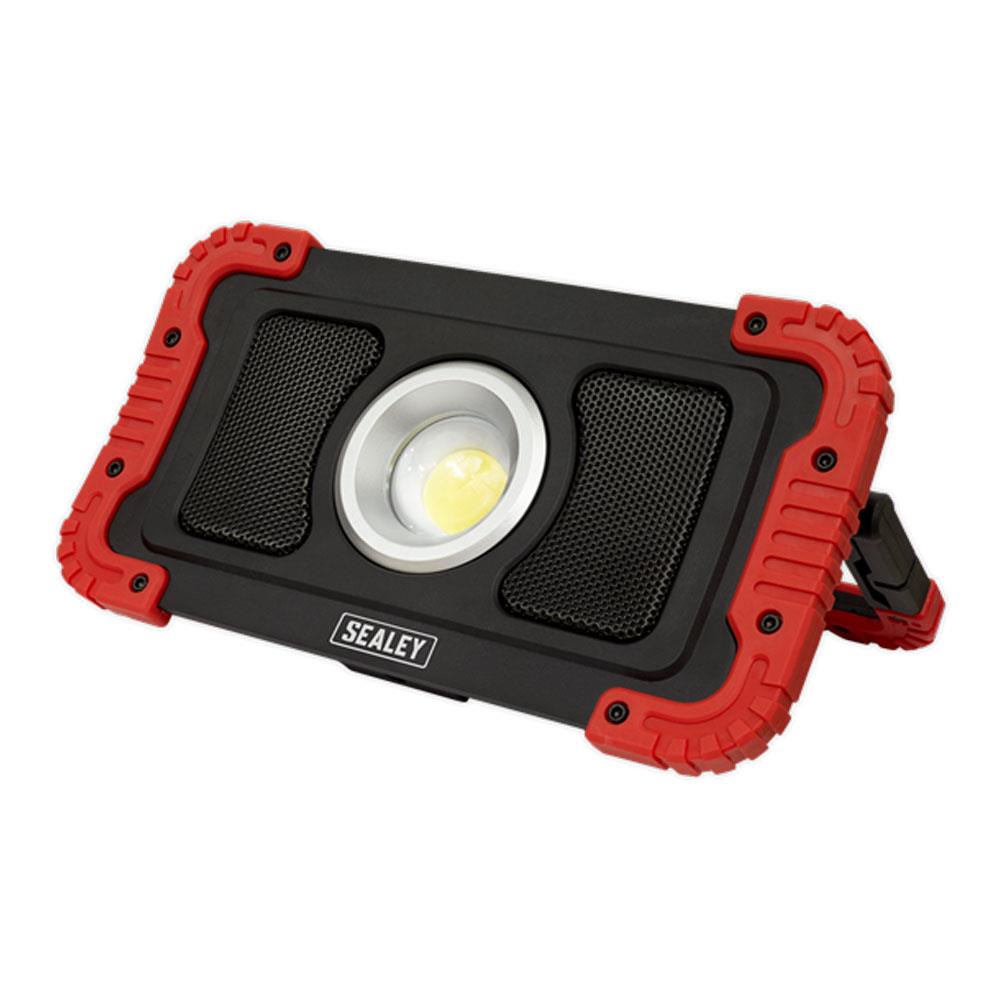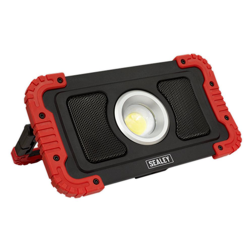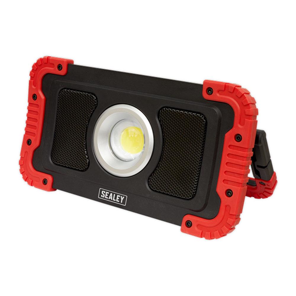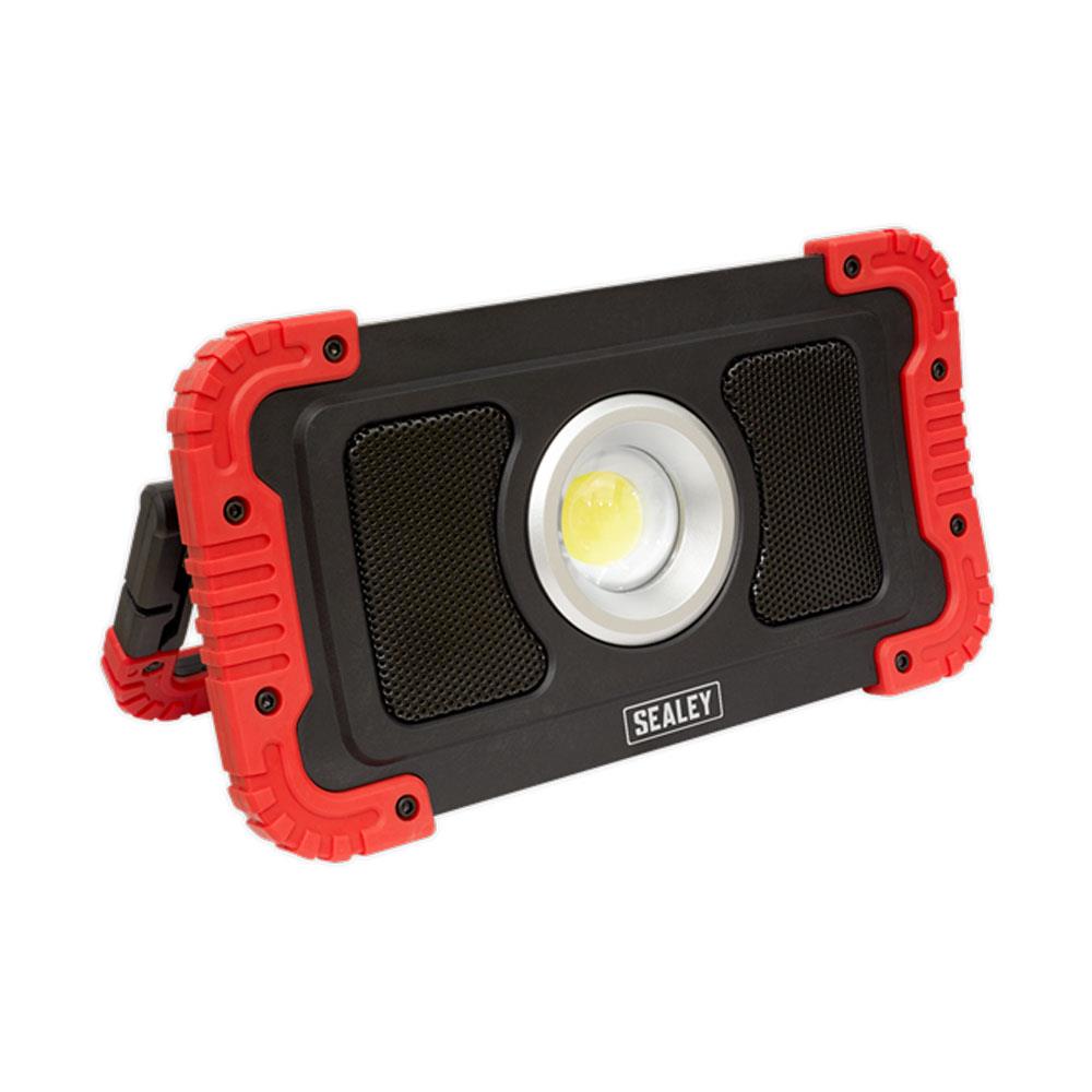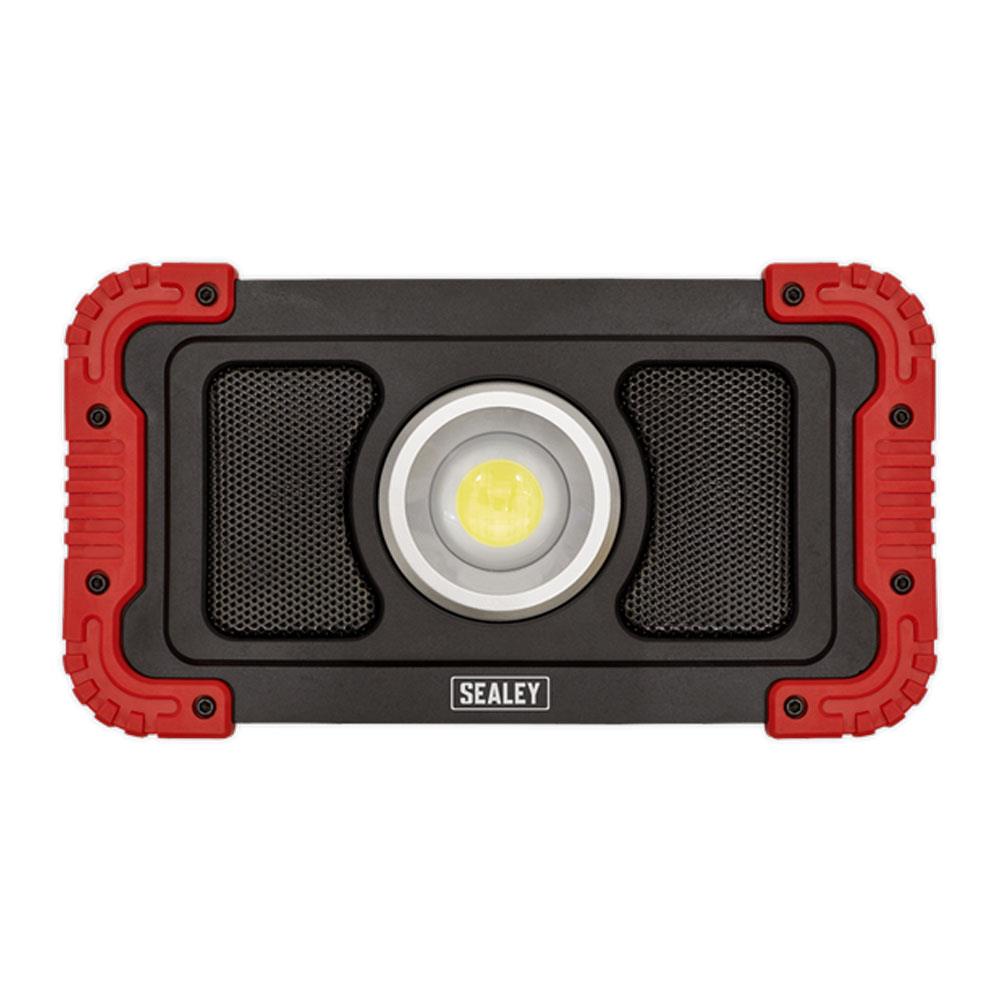 Sealey 20W COB LED Rechargeable Floodlight With Wireless Speakers And Power Bank – Black/Red