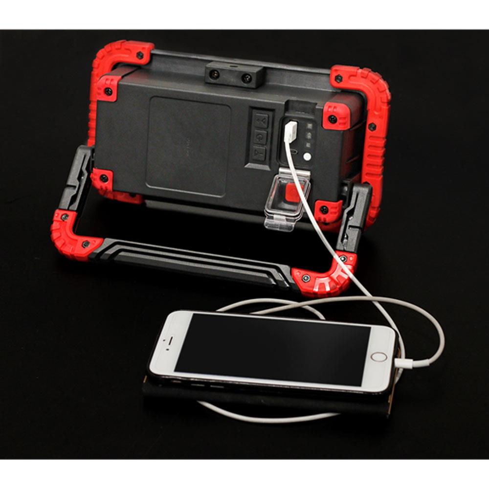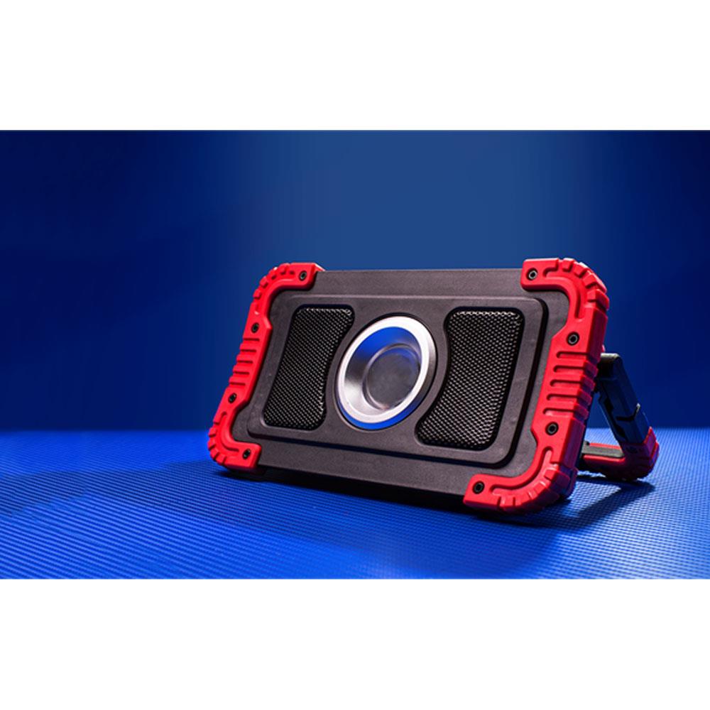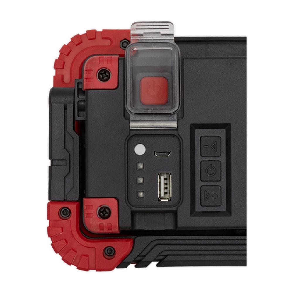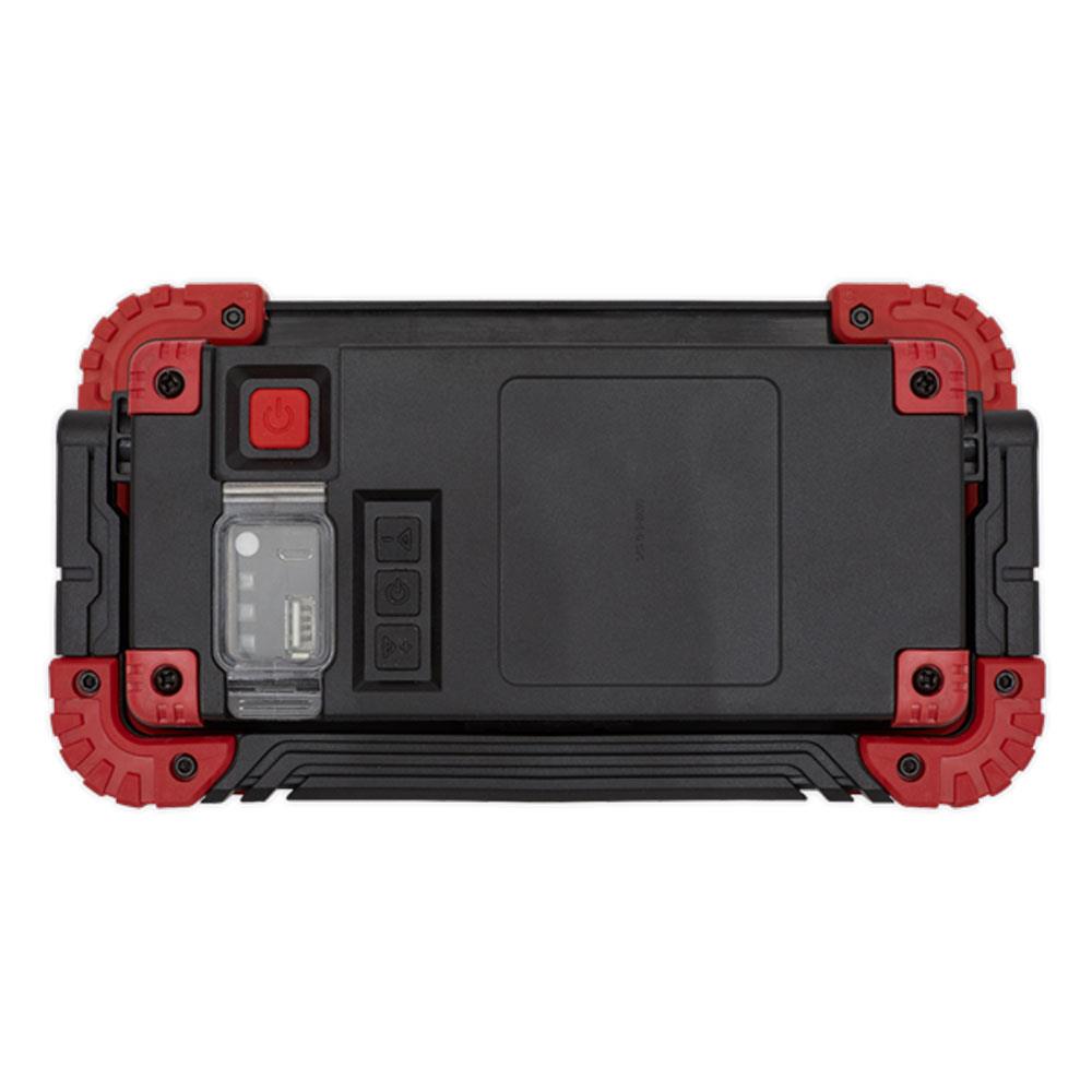 Sealey 20W COB LED Rechargeable Floodlight With Wireless Speakers And Power Bank - Black/Red - Image 6