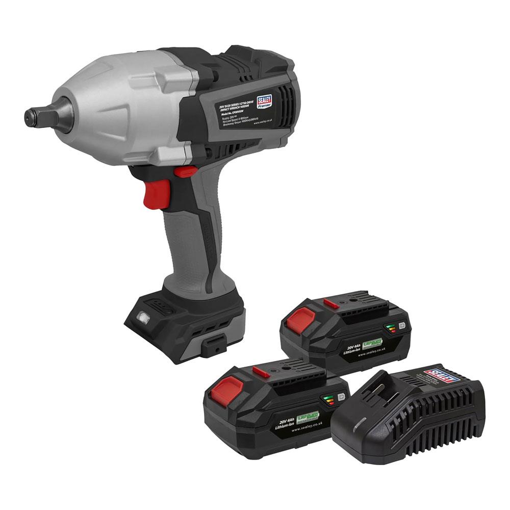 Sealey SV20 Series Brushless Cordless Impact Wrench Kit 20V 4Ah 2 Batteries – Black