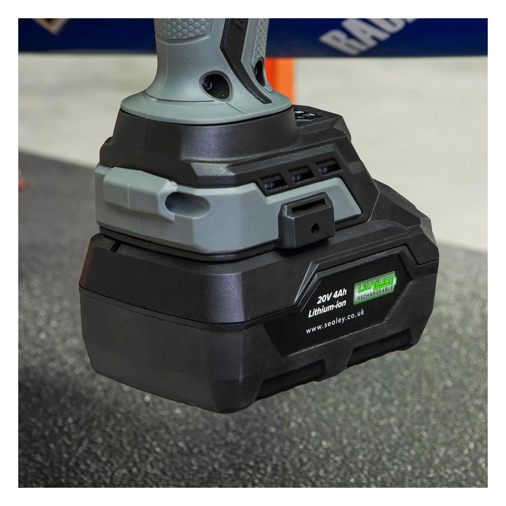 Sealey SV20 Series Brushless Cordless Impact Wrench Kit 20V 4Ah 2 Batteries - Black - Image 4