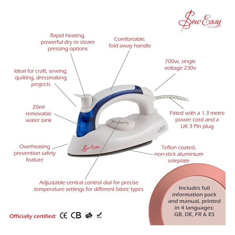 Looking for the perfect mini steam iron for your sewing and craft projects? The Sew Easy Mini Steam Iron combines a compact, foldable design, powerful 700W performance, and a Teflon non-stick soleplate for effortless, snag-free ironing. Whether you’re quilting, sewing, or crafting on the go, this portable iron delivers convenience and precision every time.