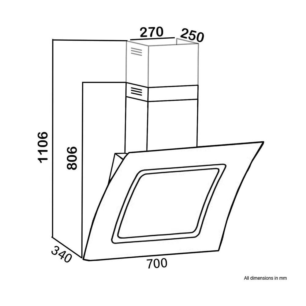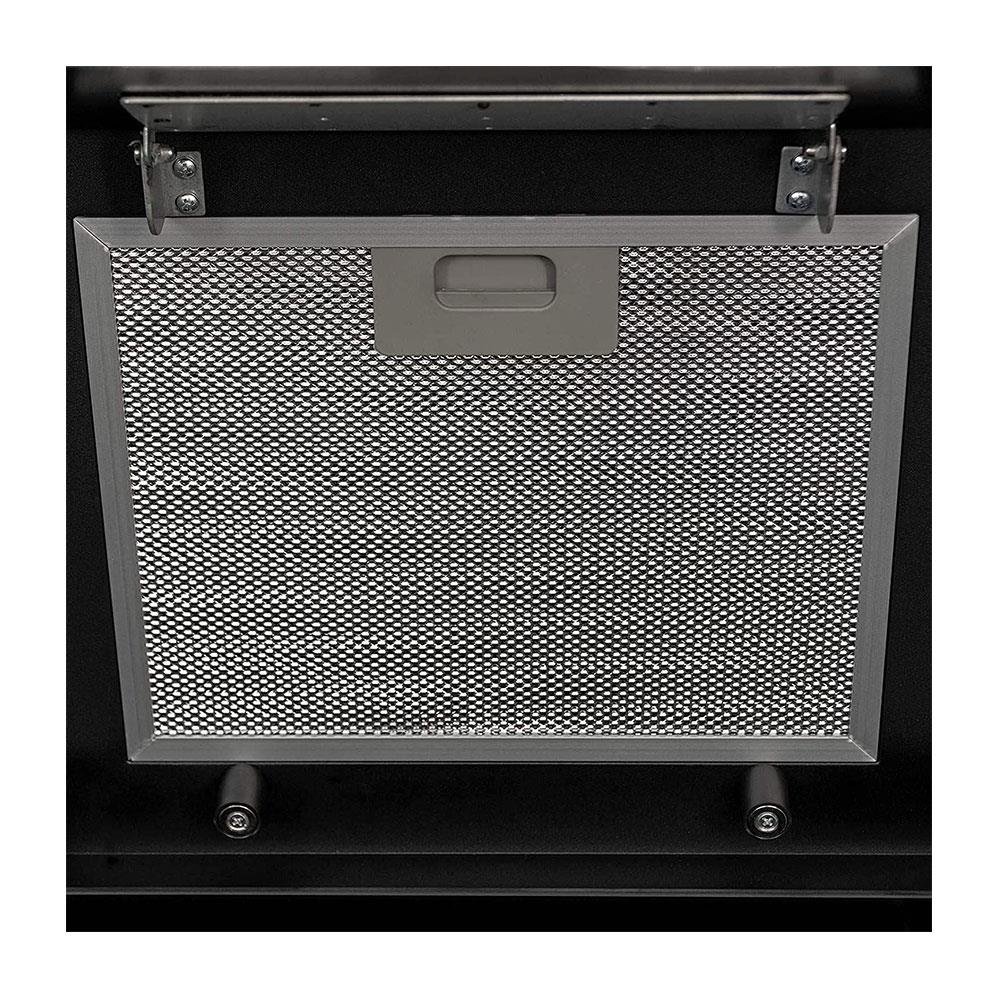This cooker hood is suitable for either internal re-circulation – air is passed through a charcoal filter, purified, and released back into the kitchen, or external extraction – cooking odors and vapors are transferred outside with the help of a ducting kit. Please see below for the appropriate accessories.