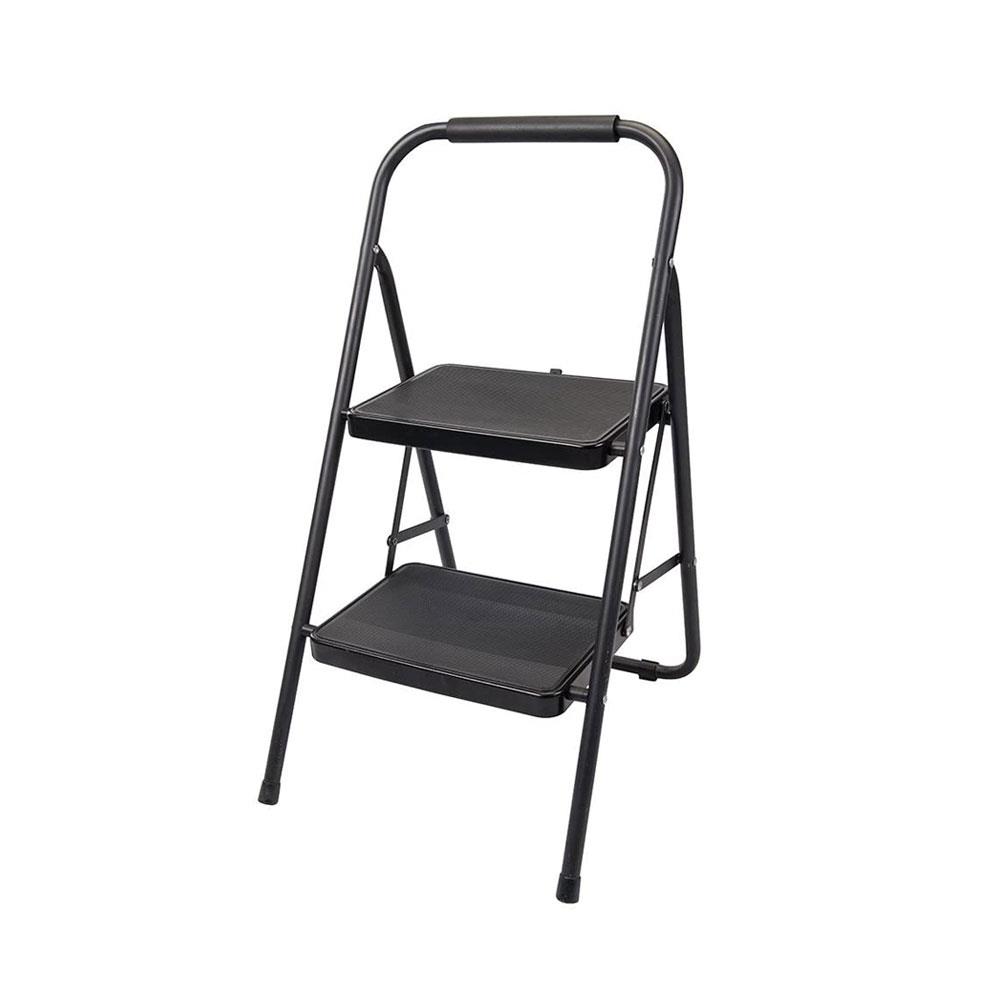 • Foldable step ladder made from tubular steel with 2 wide non-slip treads.