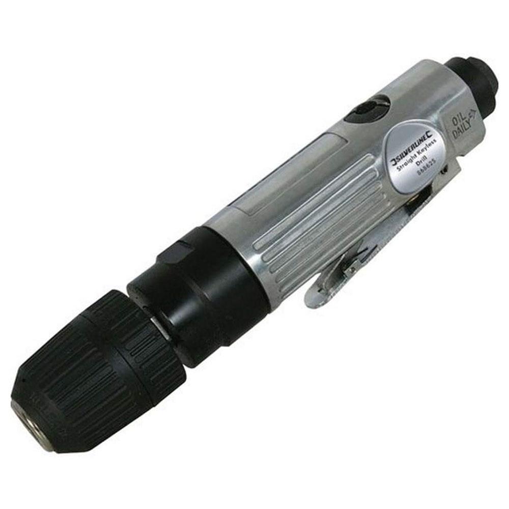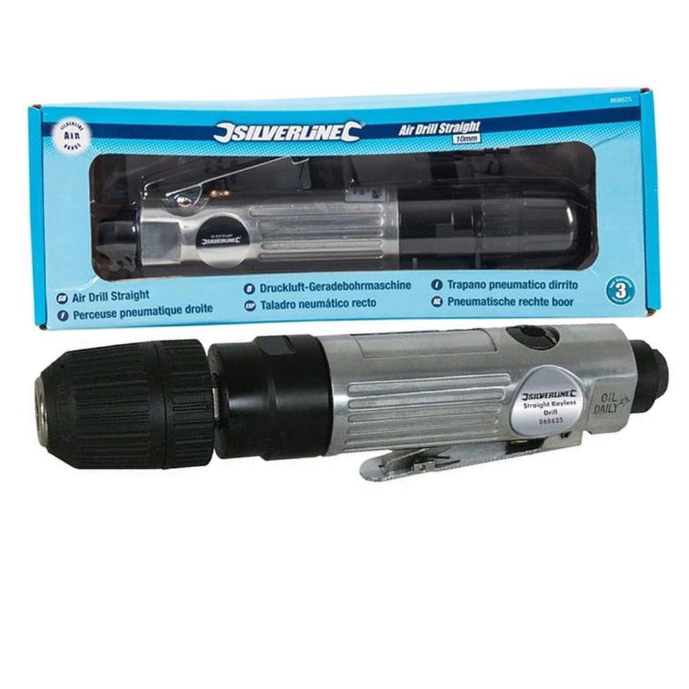 Silverline 10mm Straight Air Drill – Keyless, Reversible, Lightweight – Silver/Black