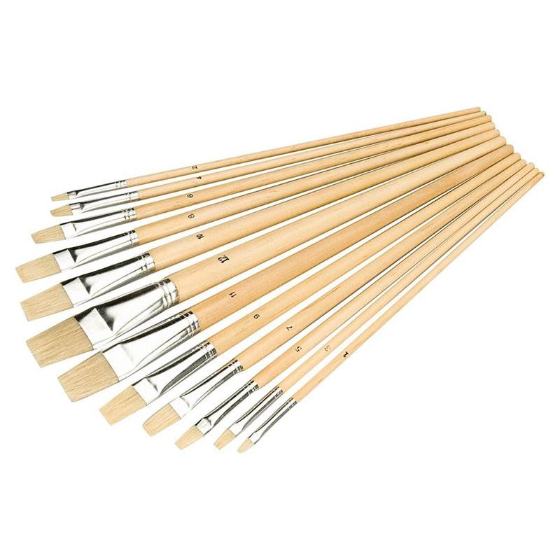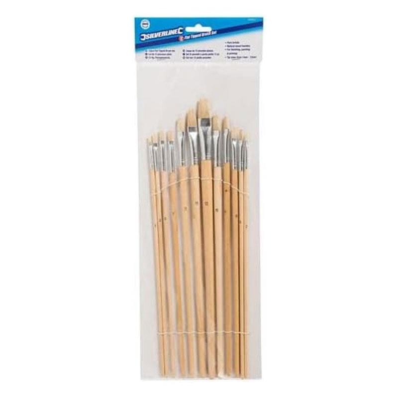 Silverline Artists Paint Brush Set Flat Tips 1-12mm 12 Piece