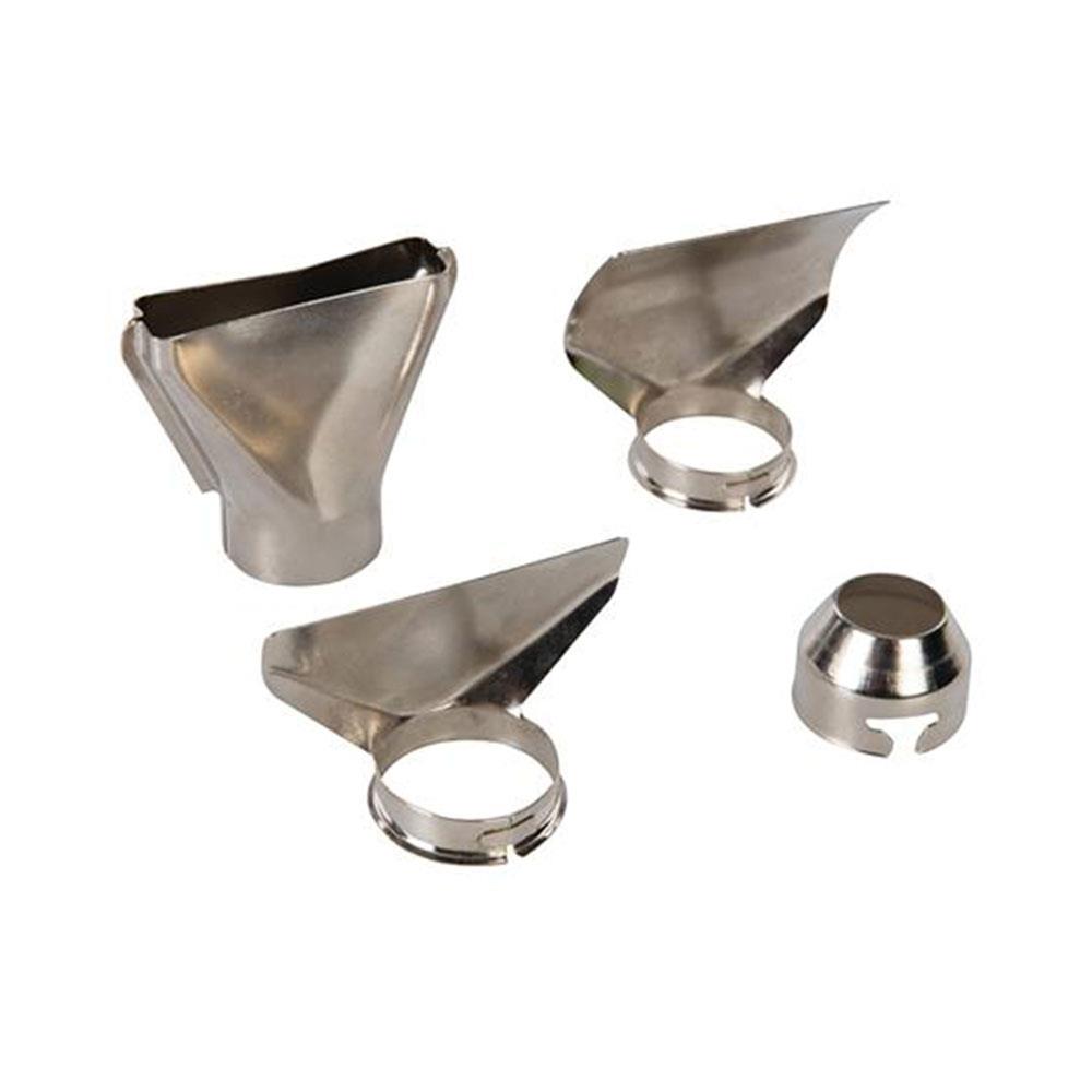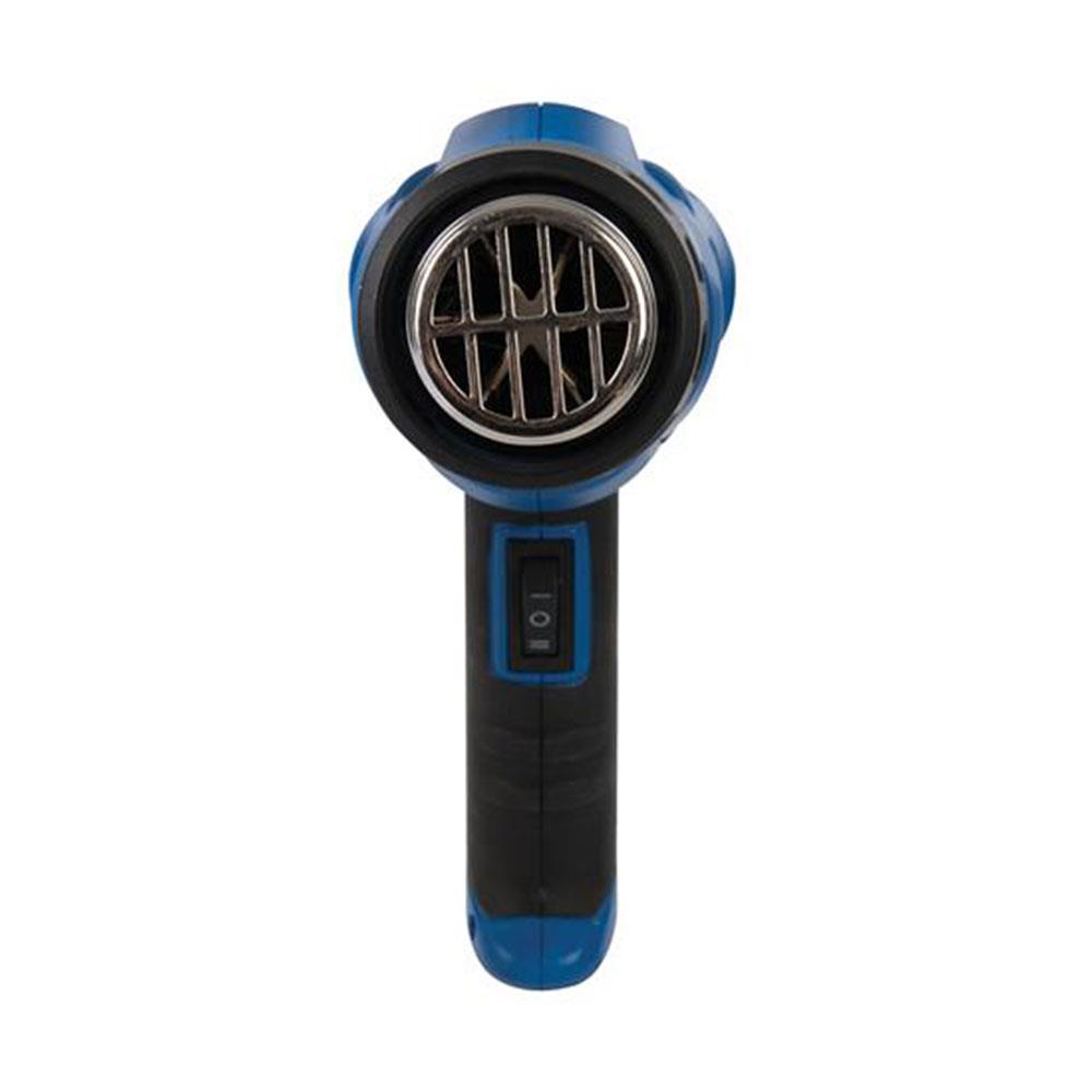 2 heat settings with a maximum air temperature of 550°C. For drying or stripping paint, shaping plastic and heat-shrink tubing, or defrosting frozen water pipes. Includes 4 x accessory nozzles: Big circle, small circle, scraper, and flat.