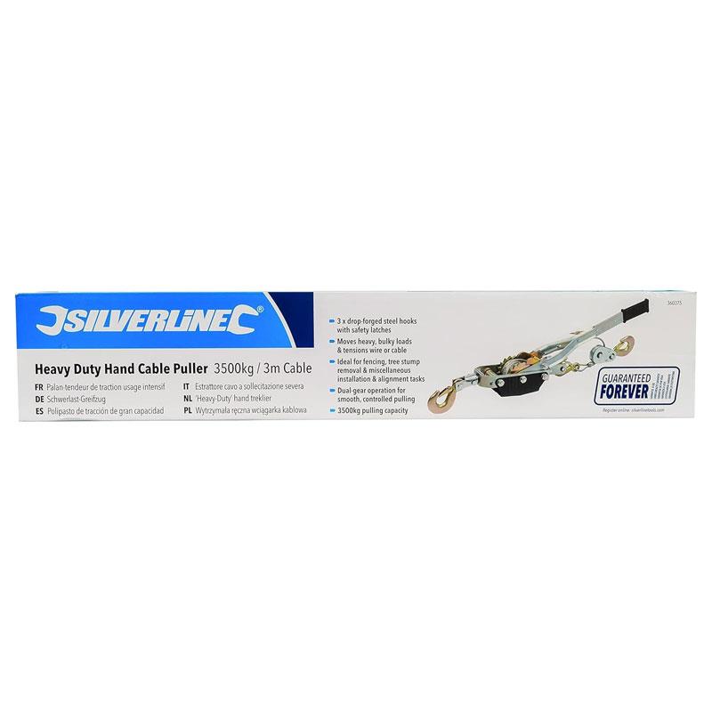Silverline Heavy Duty Hand Cable Puller – 3500kg Capacity | 3m Steel Cable