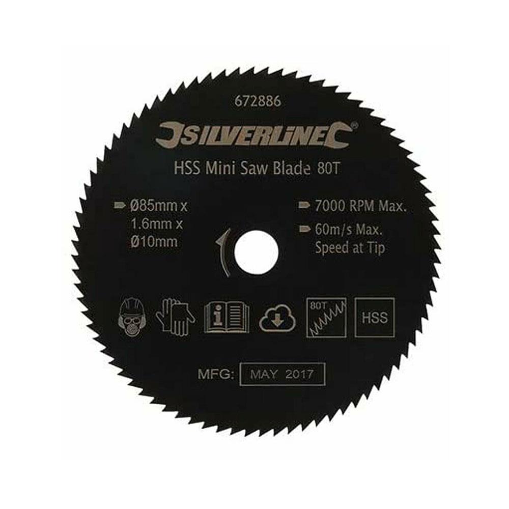 Silverline HSS Mini Saw Blade 85mm Dia – 10mm Bore – 80T