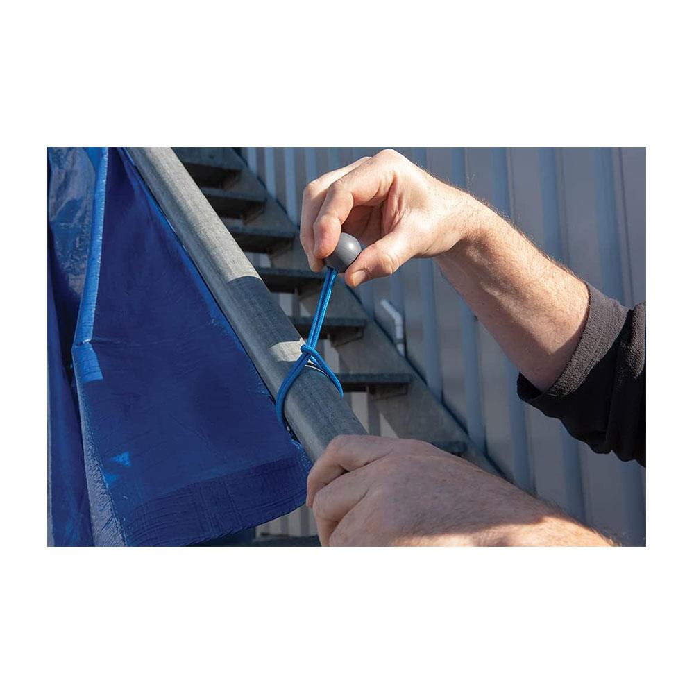 • Durable elastic loops fix tarpaulin, and other objects and coverings into position