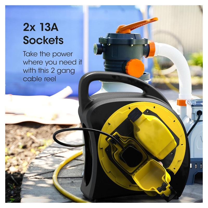SLx 2 Socket Outdoor Extension Lead 30m Heavy Duty Extension Cable Reel UK Plug Waterproof - Yellow/Black - Image 4