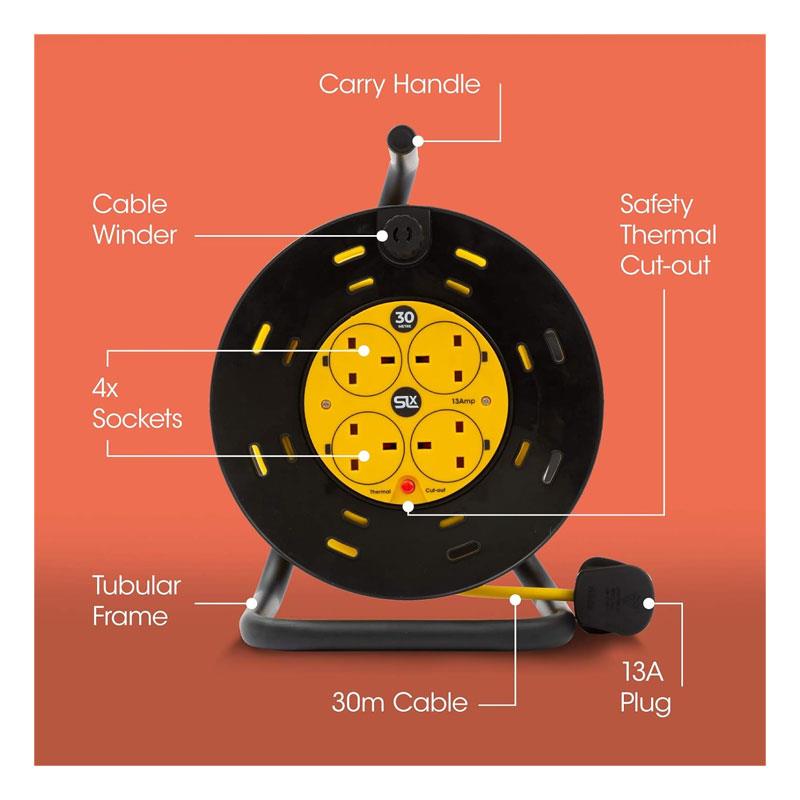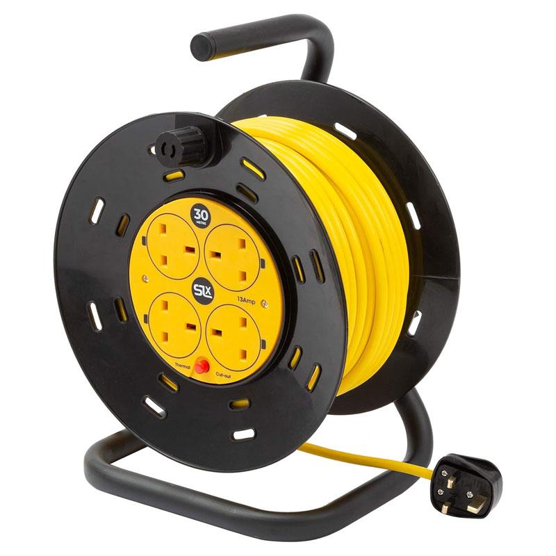 SLx 30m Extension Cable Reel With Four 13A Sockets – Yellow