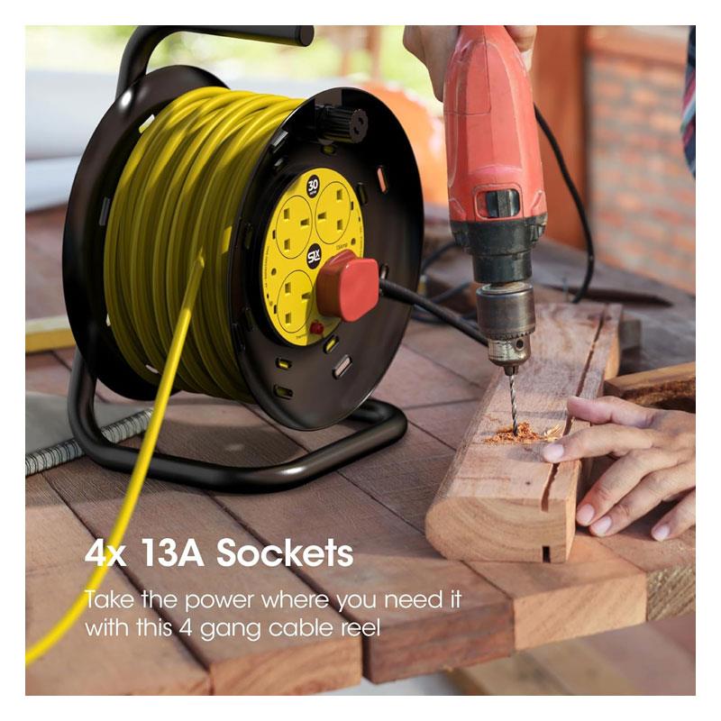 SLx 30m Extension Cable Reel With Four 13A Sockets - Yellow - Image 4