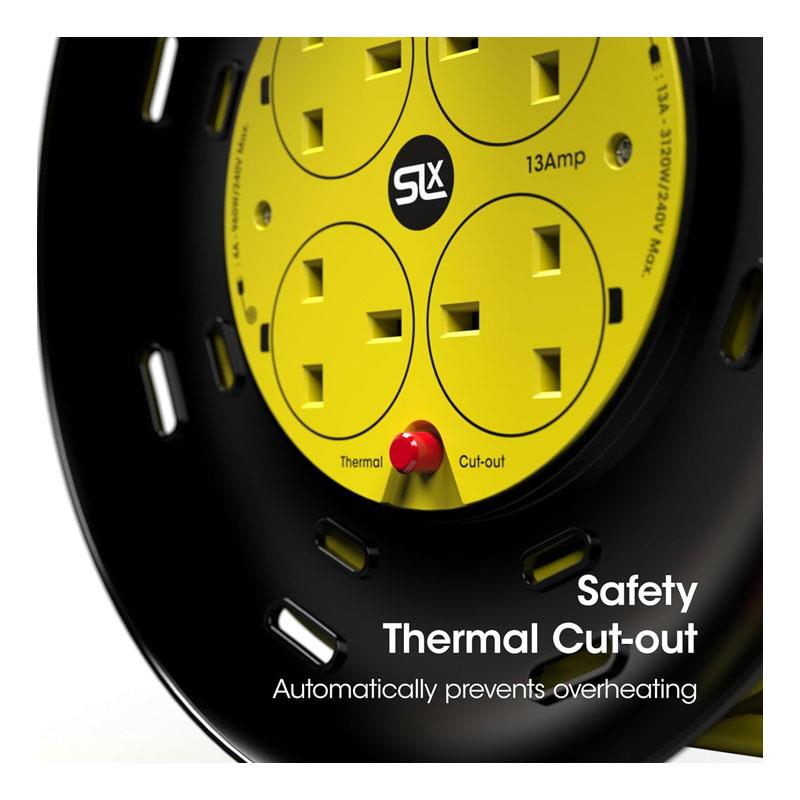 SLx 30m Extension Cable Reel With Four 13A Sockets - Yellow - Image 6