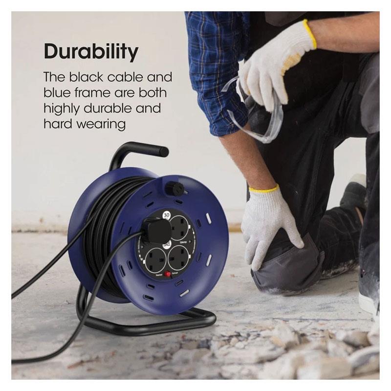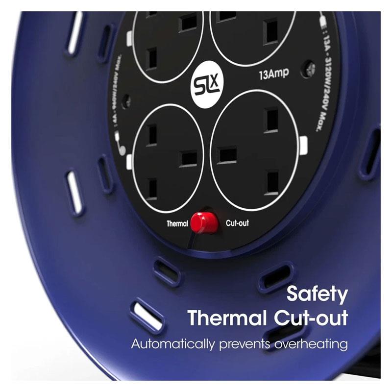 SLx 4 Socket Extension Lead UK Plug Socket 30m Heavy Duty Cable Reel 13A - Black & Blue - Image 4