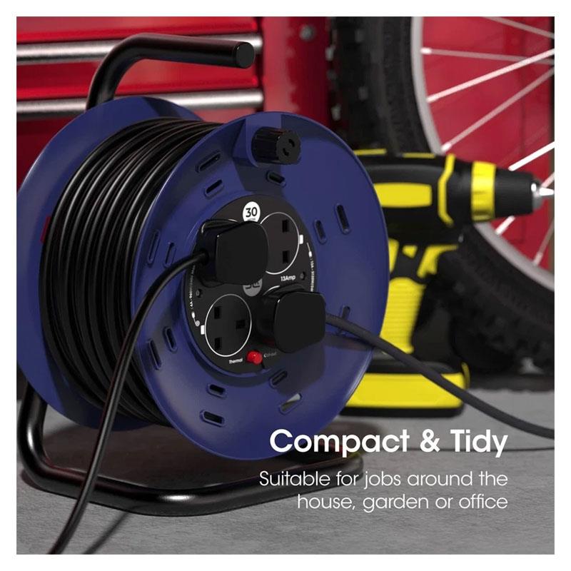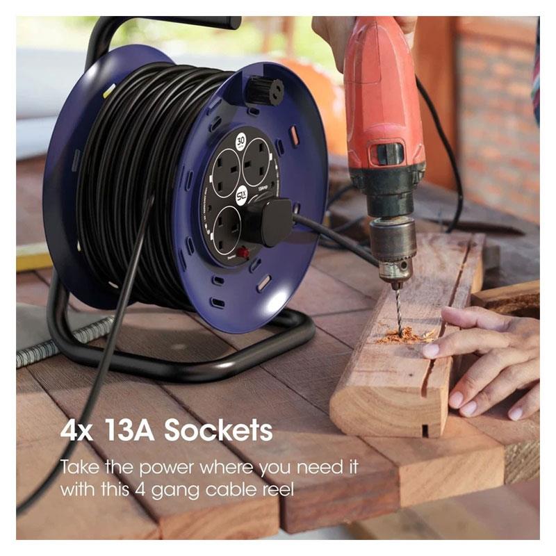 SLx 30m Heavy Duty 4 Socket Extension Lead Cable Reel – 13A UK Plug | Outdoor Power Reel | Buy Online at Buys Best