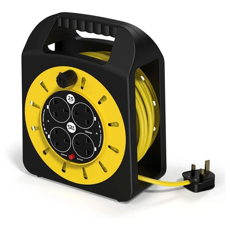 SLx 4 Socket Outdoor Extension Lead 25m — Heavy Duty Cable Reel with 13A Fused UK Plug