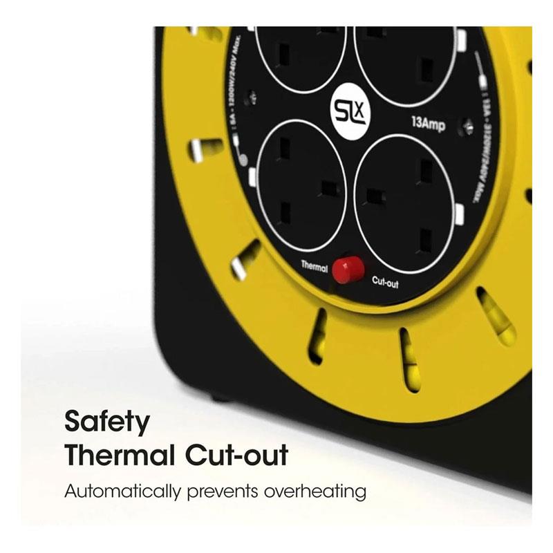 The SLx 25m 4-Socket Heavy Duty Extension Reel isn’t just a cable — it’s a safe, versatile, and long-lasting power solution trusted by homeowners, tradespeople, and offices across the UK. With BSI approval, high visibility, and built-in thermal protection, you can power up with confidence, wherever you are.