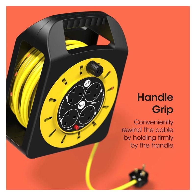SLx 4 Socket Outdoor Extension Lead 25m 13A Fused UK Plug Heavy Duty Extension Cable Reel - Yellow/Black - Image 3