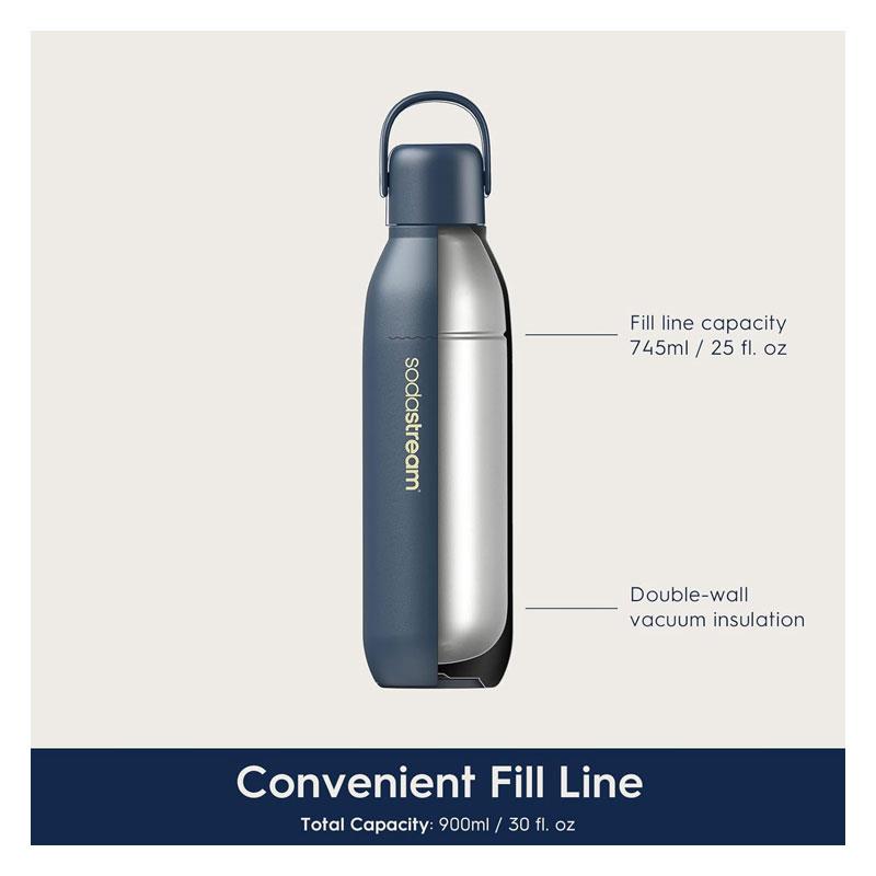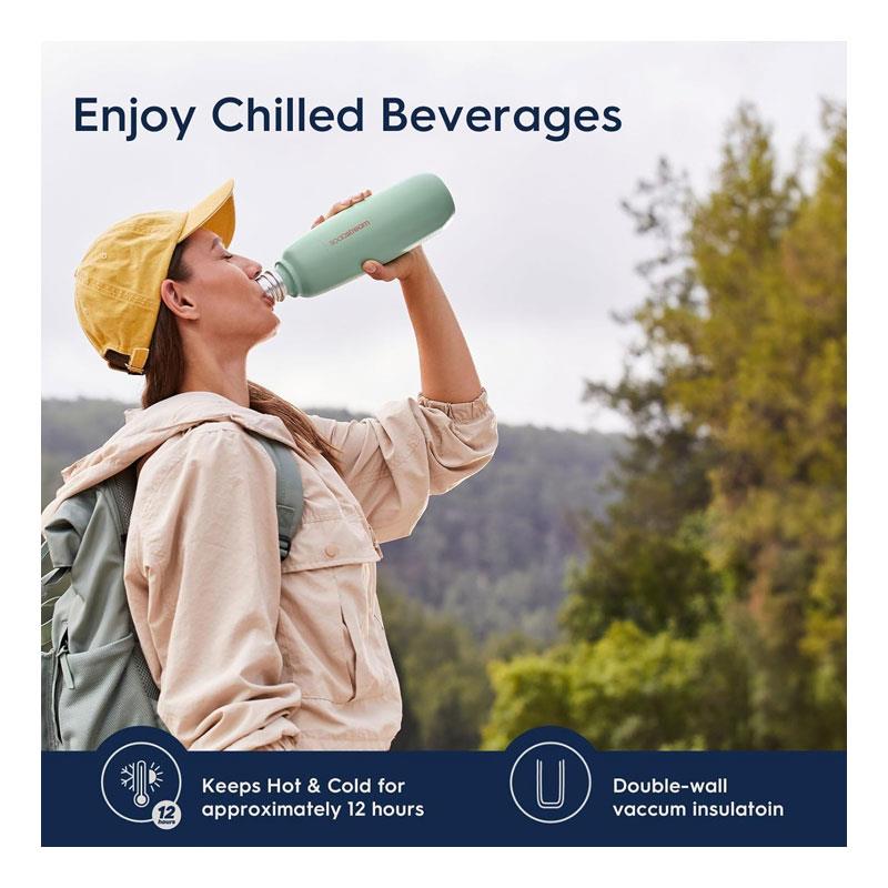 Stay cool, stay fizzy, stay stylish. The SodaStream Fizz & Go Cool Bottle is your perfect companion for refreshing sparkling water on the go. With its sleek mint green finish, double-wall insulation and premium stainless steel design, this 900ml reusable drinks bottle keeps your fizzy creations crisp, cool, and carbonated for up to 12 hours – wherever your day takes you.