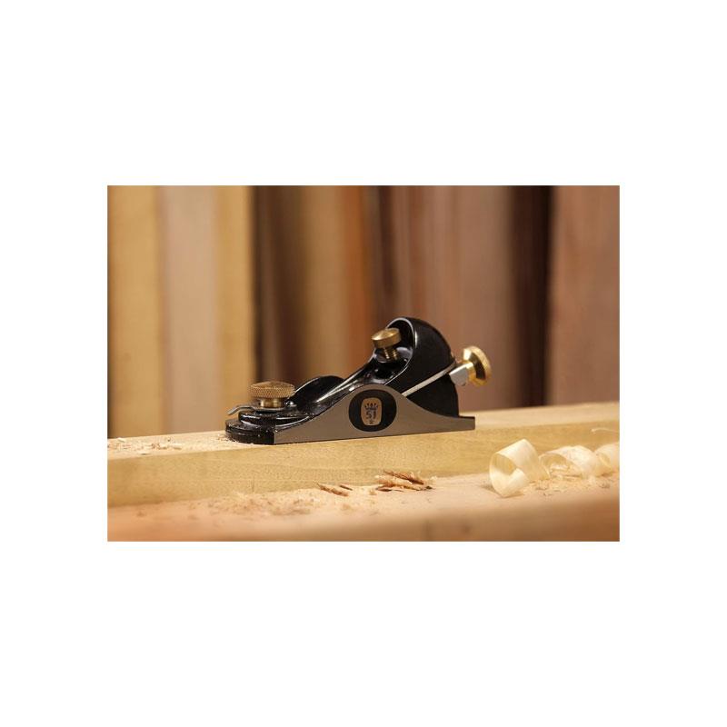 The fully adjustable mouth opening allows fine control over shaving thickness, while the brass adjusting screw enables easy and precise blade adjustment. Compact and lightweight at just 0.7kg, this 6½” block plane is ideal for on-site work, workshops and general woodworking applications.