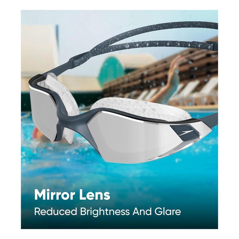 • Max Peripheral Vision: Intricately designed wraparound mirror lenses offer enhanced peripheral awareness, reduce glare, and provide UV protection—ideal for both indoor and outdoor swims.