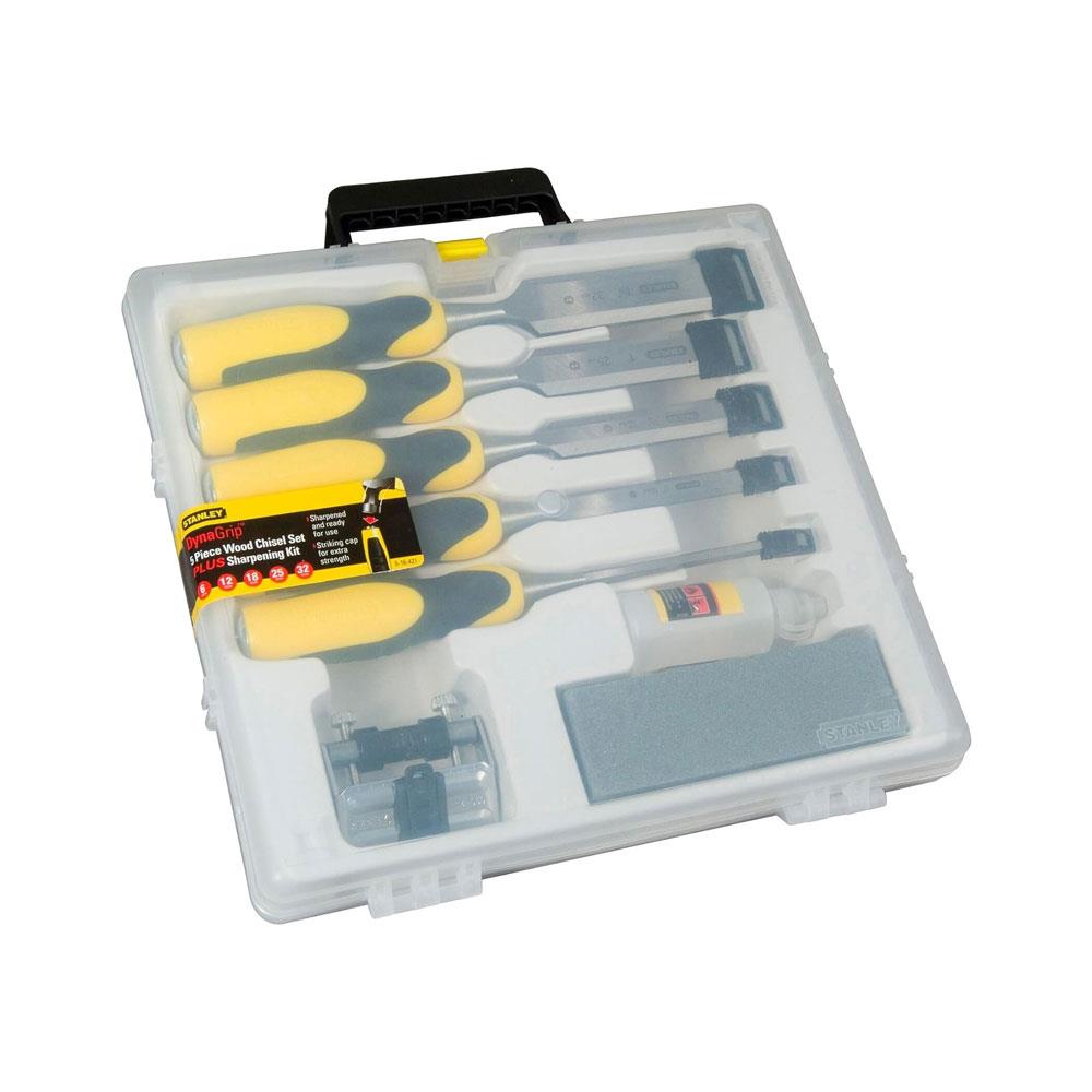 Stanley Dynagrip Chisels And Strike Cap Set With Accessories – 5 Piece